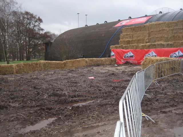 Dahinter geht´s per Rutschen runter, anschließend wurde der Matsch schon mal gut gewässert: